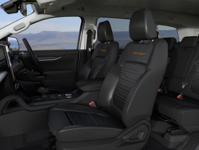 The contemporary interior finish features bespoke ebony leather-accented seats embossed with Tremor logo, plus all-weather floor mats to add that extra comfort and durability for your off-road adventure.