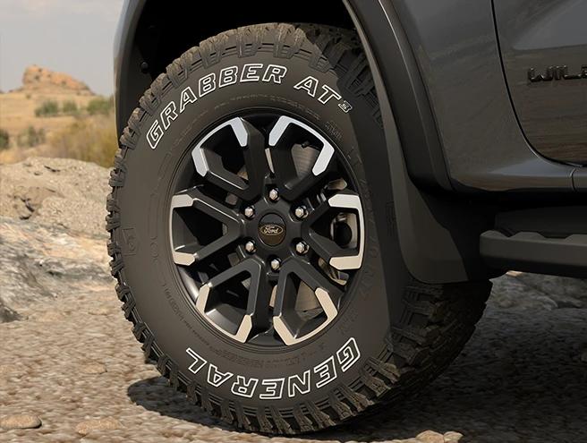 Stand tall on Asphalt Black machine-faced 17-inch alloy wheels wrapped in General Grabber AT3 All-Terrain Tyres. Plus, with an increased track width, Asphalt Black wheel arch mouldings, and heavy duty side steps, Wildtrak X comes with greater stability than Wildtrak.